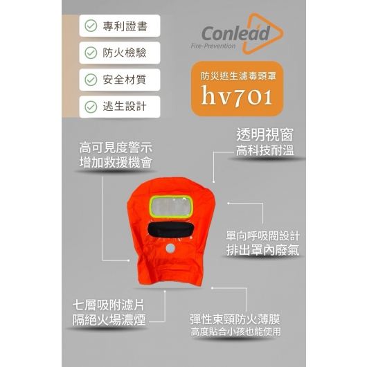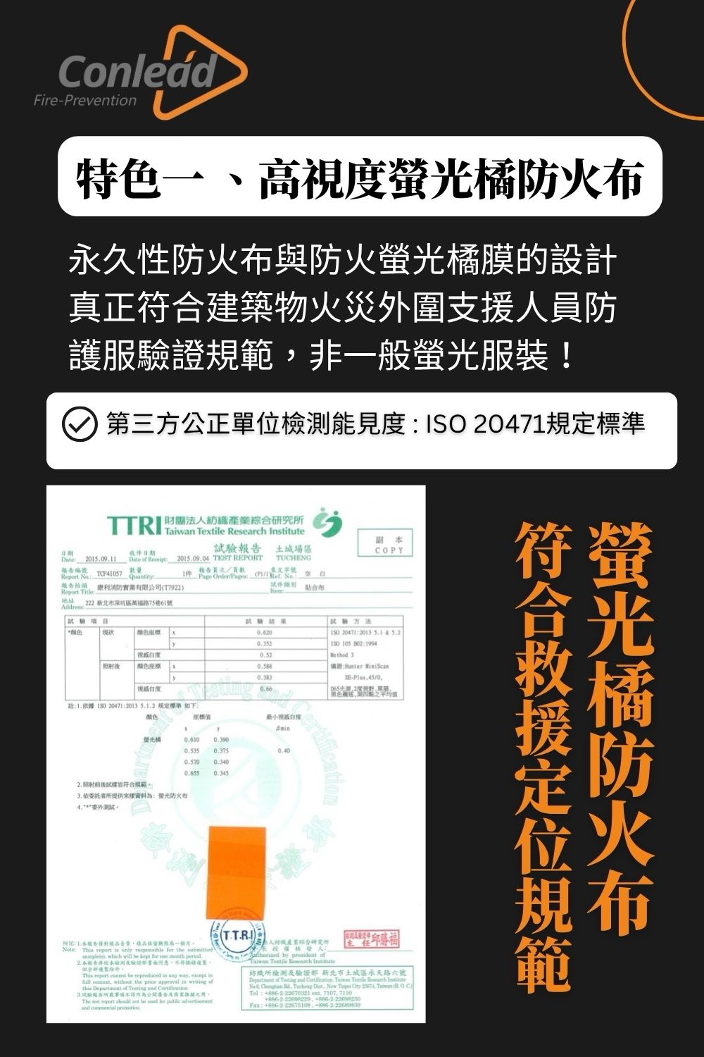 A.高警示頭罩本體:是使用高科技高警示防火布製造,不僅可以提供防火防護,其符合最新歐洲EN471規範的高警示性螢光橘外觀,可以讓救援人員在400公尺以外就能輕易定位使用而予立即救援。